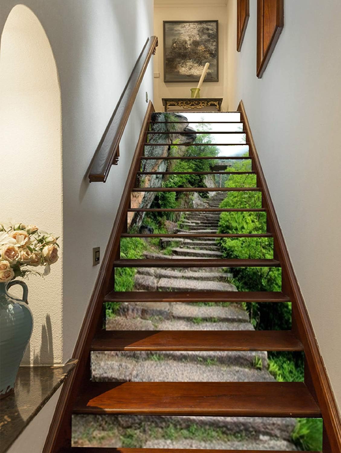 It gels in well no matter what the theme of your interior decor is. Painted staircases painted stairs wooden stairs staircase painting wooden house stair art stair decor staircase decoration decorating staircase. Abstract wall art is a great option for staircase wall art.