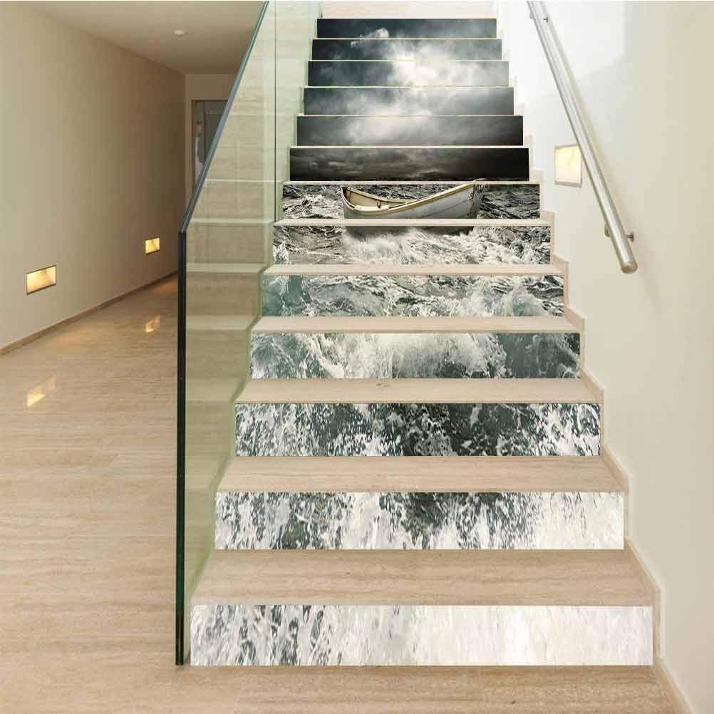 Sailing Boat Stairs Mural Peel Stick Stair Risers Decal 3d Etsy Wood Stairs Railing Designs In Steel And Glass