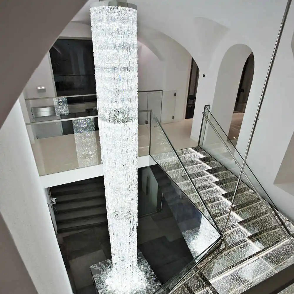 7pmlighting w256 x h984 staircase 3 sphere and 2 spiral rain drop clear led k9 modern crystal chandelier light lighting fixture for staircase 46 out of 5 stars 40 34900 349. Very large and modern decorative staircase chandelier. This raindrop chandelier is designed for large space home with staircases.