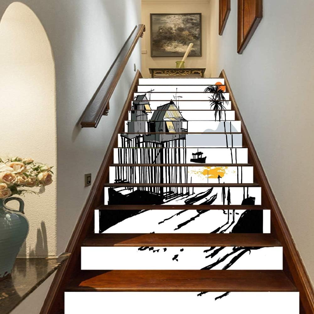 Amazon Com Marteylink Coastal Decor Staircase Stickers Sketchy Fishing Village Malay In Singapore With Houses Canoe Palms Sun Self Adhesive Wall Stair Stickers Mural Wallpaper For Home Decor 39 3 X7 X13pcs Home Kitchen Home Stainless Steel Staircase Design