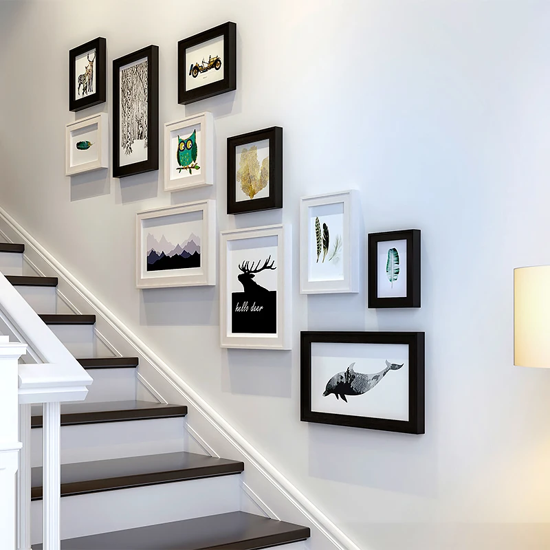 5 out of 5 stars 256 256 reviews 19900. Each frame in this wall frame kit includes two hangers on the back of the frame for vertical or horizontal display and easy to hang wall templates with multiple decorating ideas for quick and painless installation and creative. Apr 26 2013 explore bojana ms board stairway frames on pinterest.
