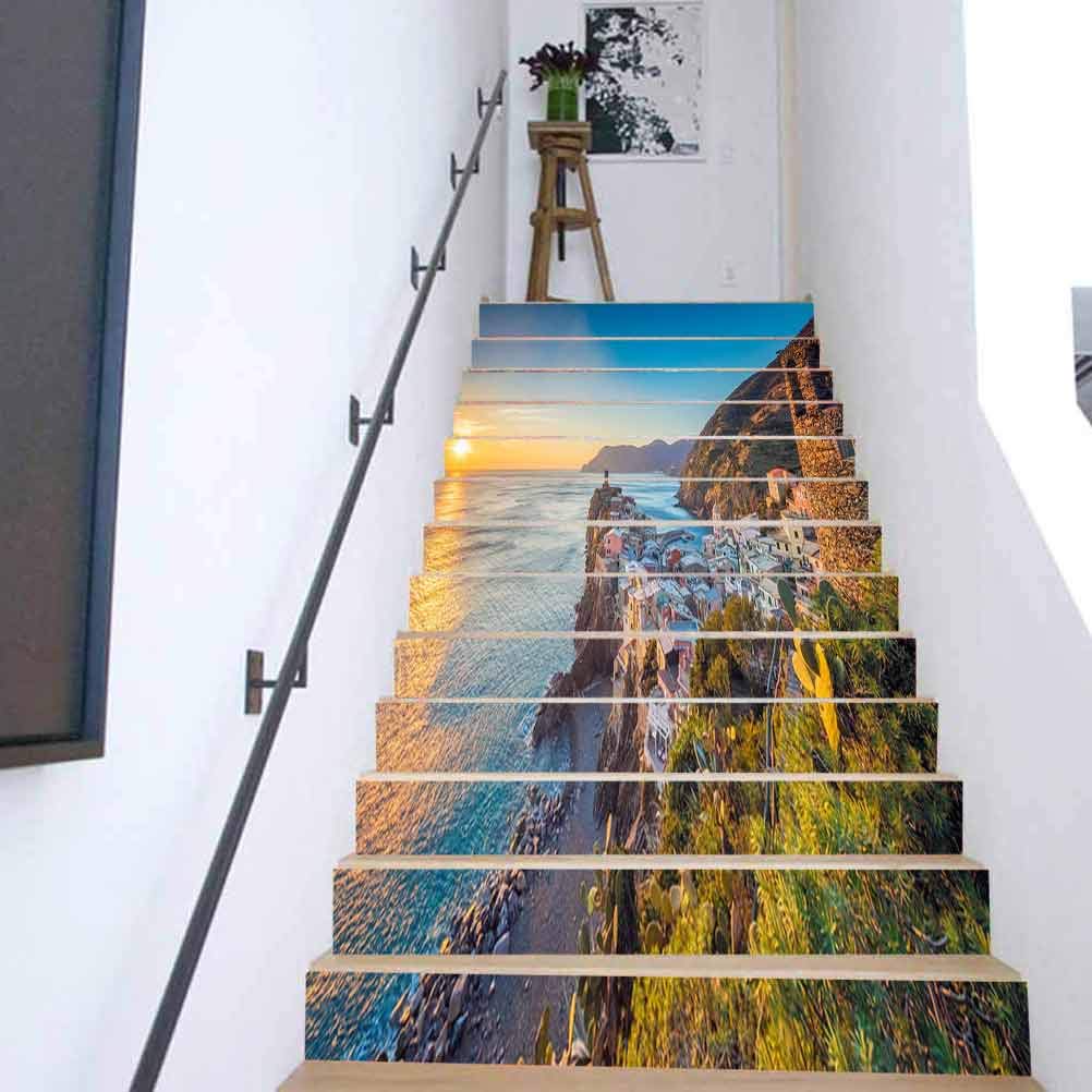 Amazon Com Pvc Sticker Stairs Anti Ash Wallpaper Steps Wall Decor Vernazza At Sunset Cinque Terre 3d Staircase Stair Riser Floor Sticker 43 3 X 7 08 Inch 13pcs Set Baby Painting Ideas Stairs Hallways