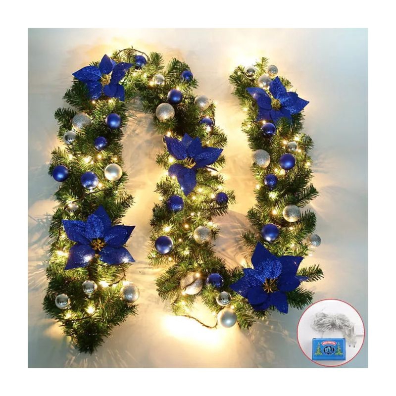 Yoodada 2 7m Christmas Garland Fireplace Stairs Gold Baubles Flowers Xmas Tree Blibfbling Decor Shopee Indonesia Hallway Stairs Lighting Ideas