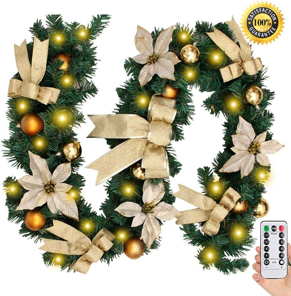 Yukong Christmas Garland Decoration With Light Realistic Garlands Festive Decor With Pine Cone Baubles For Xmas Tree Fireplaces Stairs Doors 8 8ft Amazon Co Uk Kitchen Home Hallway Stairs Lighting Ideas