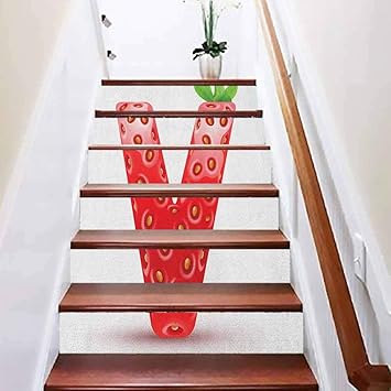 Amazon Com Staircase Decor Family Riser Decals Letter V Abc Of The Organic Life Theme Juicy Strawberry Nut For Walls Kitchen Stair Decals Home Decorations W43 3 X H7 08 Inch X6pcs Baby Car Parking Under Stairs