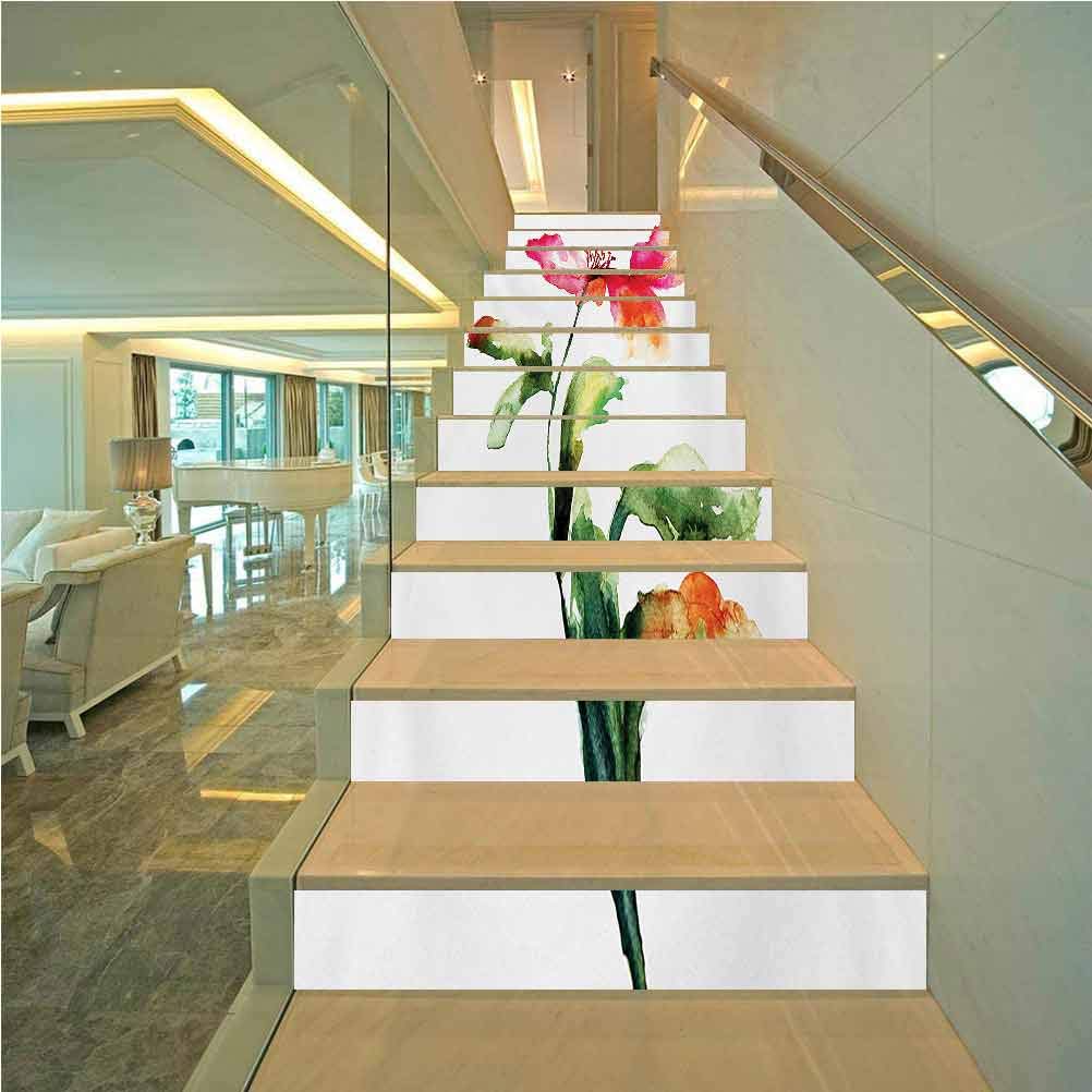 Amazon Com Staircase Decor Family Riser Decals Watercolor Flower Shaded Single Poppy Flowering Plant Muse For Wedding Home Restaurant Decals W43 3 X H7 08 Inch X13pcs Baby Cable Railing Interior Stairs